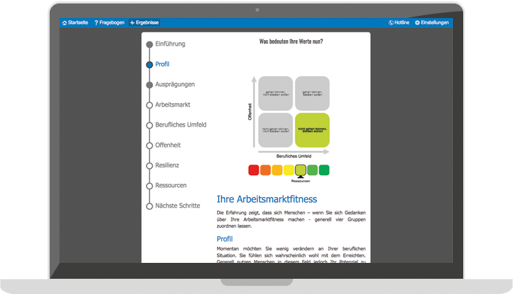 Ein Career Check besteht aus zwei Schritten: einem Online-Fragebogen und einem vertraulichen Auswertungsgespräch mit einem Coach. Ein Auswertungsgespräch endet stets mit einem persönlich auf Dich zugeschnittenen Massnahmenplan.